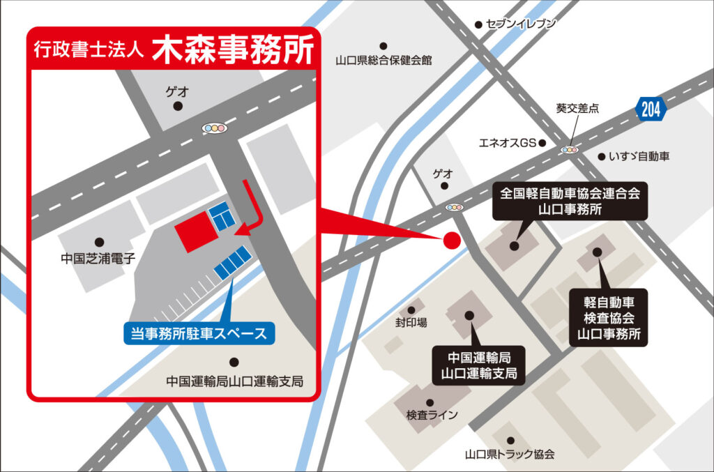 中国運輸局山口運輸支局に隣接した行政書士事務所です。